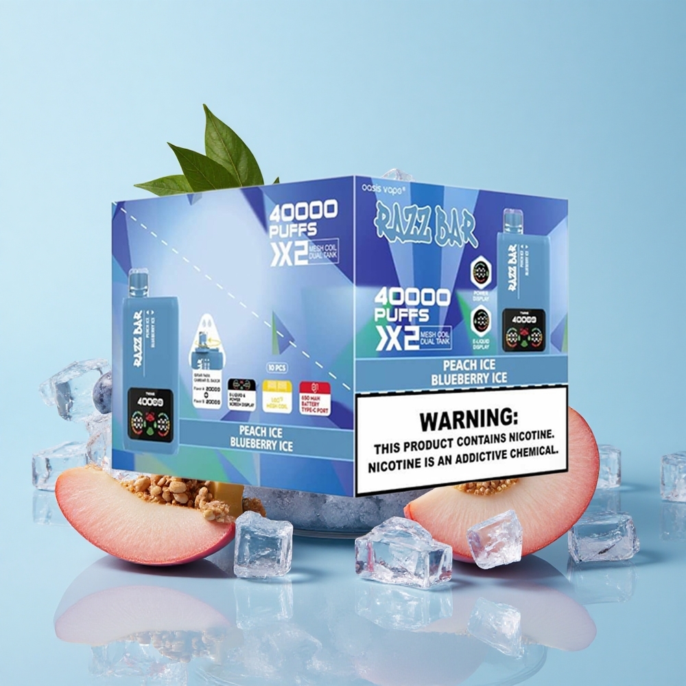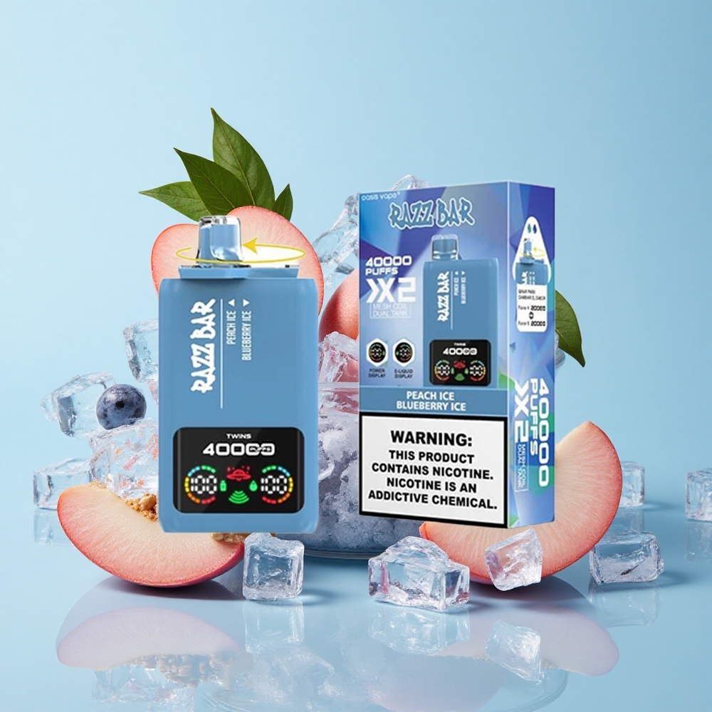 Razz Bar 40000 Puffs بخوخ مثلج_توت أزرق مثلج شاشة عرض طاقة