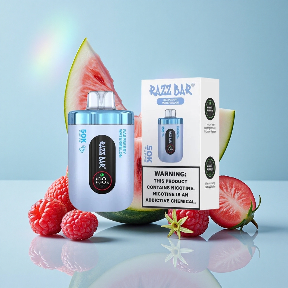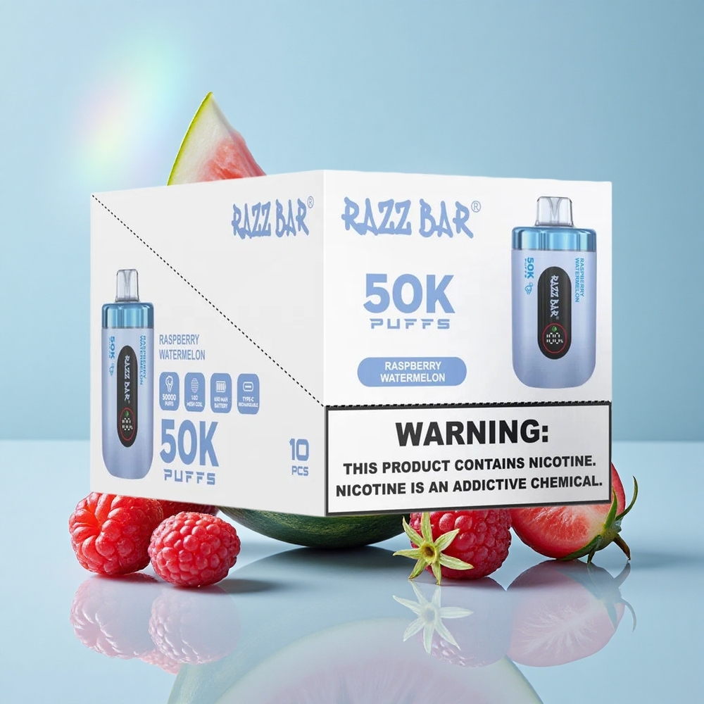 Razz Bar 50K Puffs سيجارة إلكترونية للاستخدام مرة واحدة توت العليق بطيخ 1.0 Ohm Mesh Coil